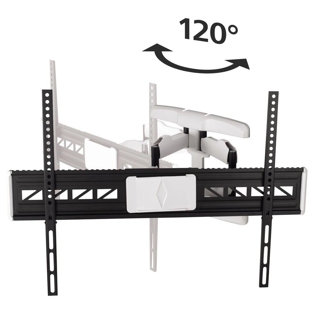 Umožňuje sklon v rozmedzí +2° až -10° a otáčanie až o 120°, čo je ideálne pre zaistenie najlepšieho pozorovacieho uhla z rôznych miest v miestnosti. Držiak je vyrobený z robustnej ocele, zaisťujúcej bezpečnú montáž.
