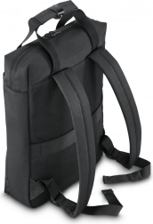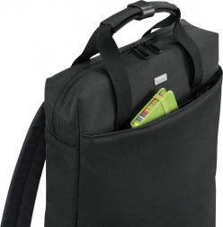 Priestranné predné vrecko s prehľadným organizérom pojme káble, telefón aj drobnosti. Hlavná priehradka bezpečne uchytí notebook pomocou elastického suchého zipsu.