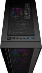 Tri predné a jeden zadný ARGB ventilátor zabezpečujú plynulé prúdenie vzduchu a pôsobivý vzhľad. Predný perforovaný panel s filtrom udržiava prach pod kontrolou.