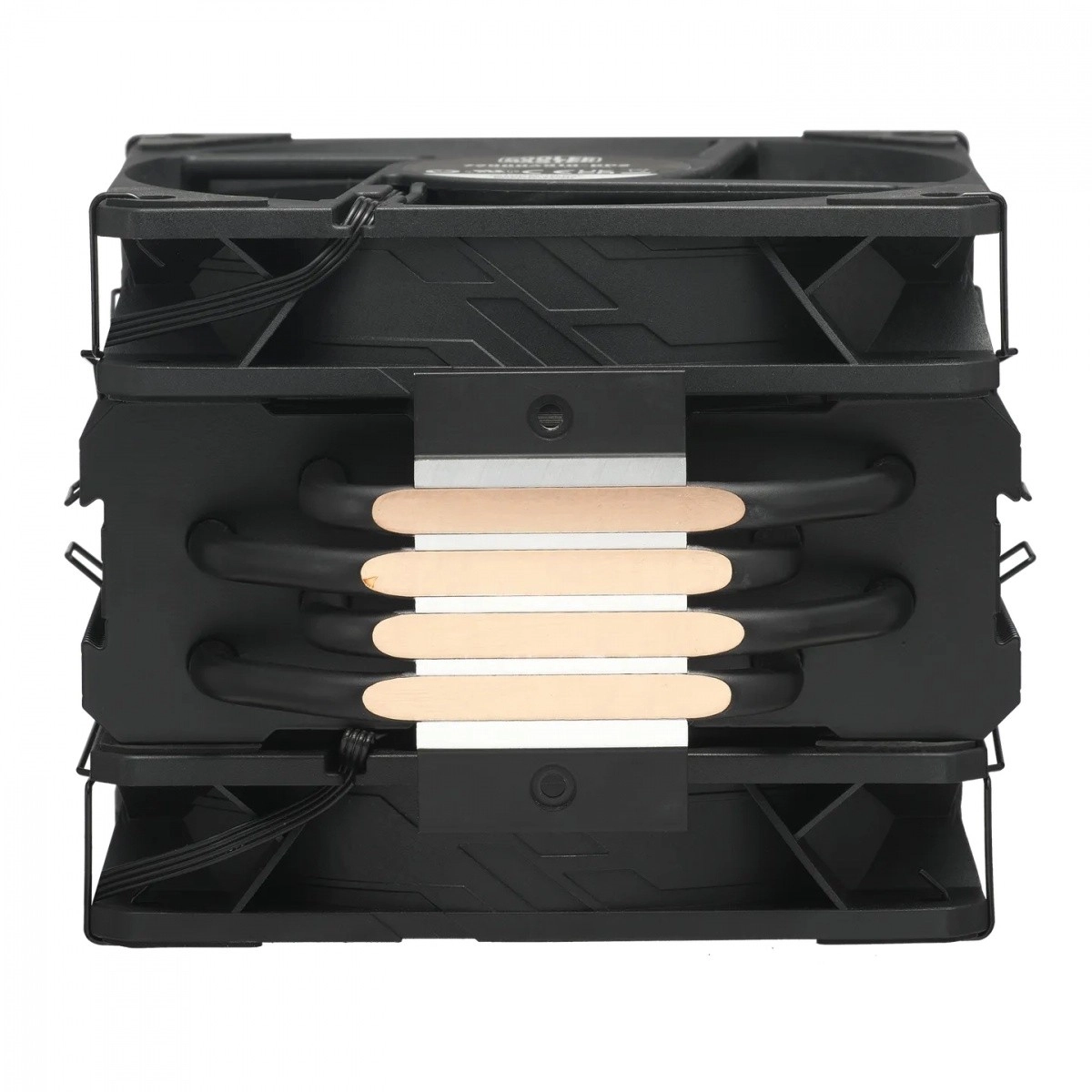 Cooler Master Hyper 212 Black X Duo nadväzuje na osvedčenú platformu Hyper 212 a posúva ju ďalej. Dvojica ventilátorov SickleFlow 120 Edge zabezpečuje vyváženú kombináciu tlaku a prietoku vzduchu pre stabilné teploty aj pri dlhodobej záťaži. Minimalistický čierny dizajn skvelo zapadne do moderných skriniek a podsvietených zostáv.