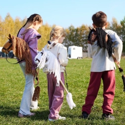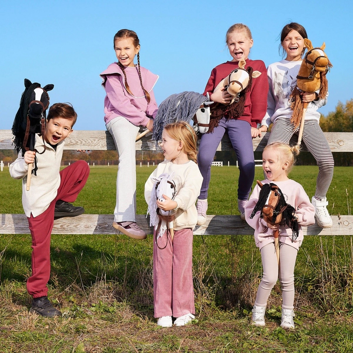 HOPPIHORSE A4 je premyslený hobby horse pre deti, ktoré milujú kone, pohyb a kreatívnu hru. Mäkký a odolný velúr je príjemný na dotyk, realistické detaily s hrivou a uzdením podporujú nápaditú hru. Stabilný kôl optimálnej dĺžky a profesionálna silikónová rukoväť zaistia istý úchop pri behu aj skokoch.