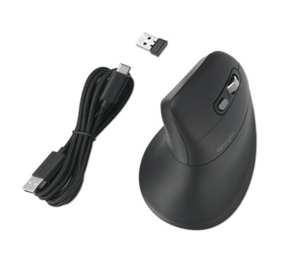 Ergonomická vertikálna bezdrôtová myš Kensington Pro Fit ponúka pohodlie a produktivitu vďaka plnej veľkosti a ergonomickému dizajnu. Podporuje pripojenie až k trom zariadeniam a je šetrná k životnému prostrediu vďaka použitiu recyklovaných materiálov.