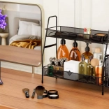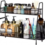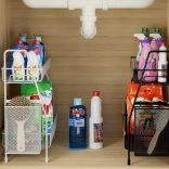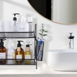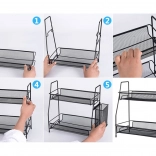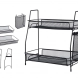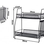 Štýlový organizér z odolnej kovovej sieťoviny pomôže maximálne využiť vertikálny priestor na linke, v špajzi aj na toaletnom stolíku. Dve úrovne pojmú koreniny, poháre, fľaše s olejom, omáčky alebo kozmetiku a parfémy. Bočný košík je ideálny na príbory, kuchynské náradie či kefky a štetce.