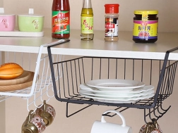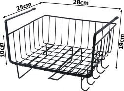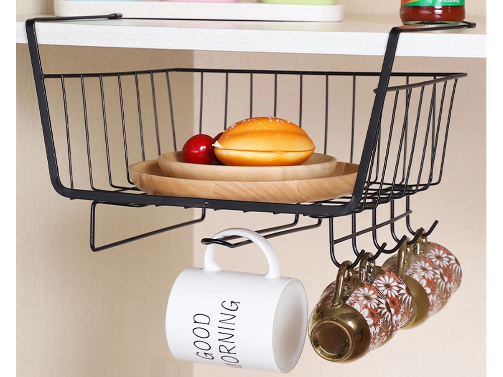 Rozšírte úložný priestor počas pár sekúnd – bez vŕtania a náradia. Závesný kôš pod policu ponúka šikovné riešenie pre taniere, misky, koreničky aj kuchynské náradie. Vďaka robustnému lakovanému kovu je stabilný a odolný proti korózii, zatiaľ čo minimalistický čierny dizajn skvele zapadne do moderných aj klasických interiérov.