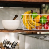 Uložte ovocie, koreničky či suché potraviny do výšky a uvoľnite si pracovnú plochu. Otvorená mriežka zaručí prehľad aj cirkuláciu vzduchu.