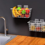 Elegantný a odolný biely drôtený košík je šikovné riešenie pre každodennú organizáciu. Ľahko ho prilepíte na hladký povrch pomocou samolepiacich háčikov – bez vŕtania, hmoždiniek a neporiadku. Otvorený dizajn podporuje vetranie a odvod vlhkosti, takže je ideálny na ovocie, zeleninu, koreničky, kozmetiku alebo čistiace prostriedky.