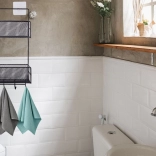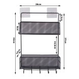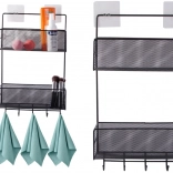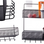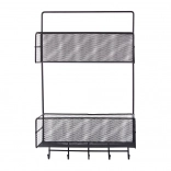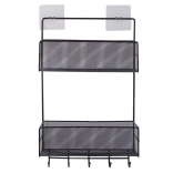 Tento multifunkčný nástenný organizér z lakovaného kovu je ideálnym riešením na prehľadné a elegantné uloženie každodenných potrieb. Dve vetrané košové police pojmú kozmetiku, čistiace prostriedky, koreniny aj drobné doplnky, zatiaľ čo spodné háčiky udržia uteráky, utierky či kľúče vždy po ruke. Vďaka bezvŕtacej montáži ho ľahko upevníte na hladký povrch.