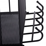 Minimalistický, čierny dizajn sa hodí do moderných aj klasických interiérov a robustná kovová konštrukcia garantuje stabilitu a dlhú životnosť. Otvorená sieteovaná konštrukcia zabezpečuje cirkuláciu vzduchu, rýchle presychanie a dobrú viditeľnosť uložených vecí.