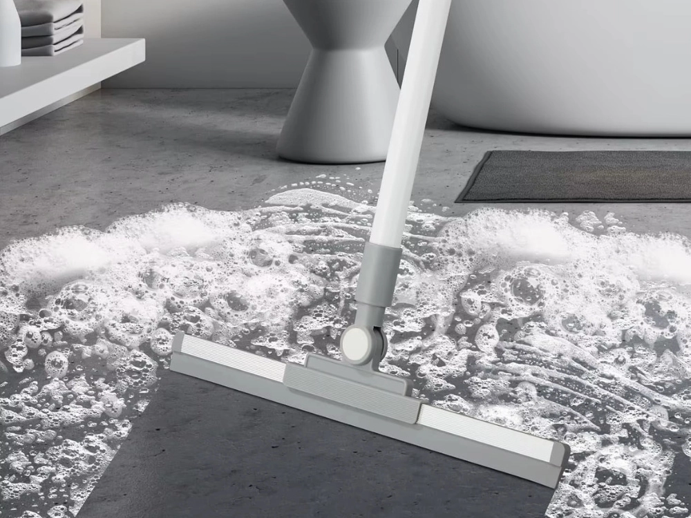 Ideálna na dlažbu, drevené podlahy, sklo a sprchové kúty. Skvele pozbiera vodu, penu, vlasy a chlpy a pomôže udržať podlahy bezpečne suché. Jednoduchá údržba – po použití opláchnite a nechajte uschnúť.