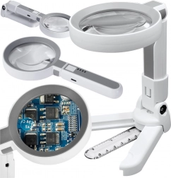 Zväčšovacia lampa na čítanie s 20 LED osvetlením predstavuje vysokokvalitné a multifunkčné riešenie pre všetkých, ktorí potrebujú precízne videnie vo svojej dennej činnosti. Lupu možno ľahko zmeniť na stojacu lampu, čo vám uvoľní obe ruky. Ponúka rôzne možnosti použitia: