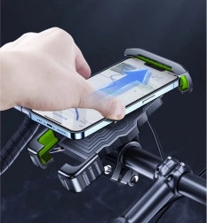 Držiak je vybavený funkciou otočenia o 360° a proti-vibračnými podložkami, ktoré minimalizujú otrasy, takže obrazovka telefónu je stále jasne viditeľná a stabilná, aj na dlažbe alebo horskom teréne.