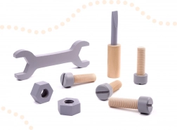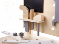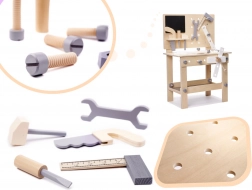 Skvelá drevená hračka dielenská súprava nástrojov pre malé deti, ktoré chcú napodobňovať dospelých a objavovať svet okolo seba. Vďaka bohatej výbave sa deti môžu cítiť ako skutoční majstri v odbore.