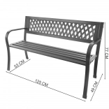Elegantná záhradná lavica v grafitovej farbe je ideálna na záhradu, terasu aj balkón. Ponúka pevnú kovovú konštrukciu z ocele a liatiny, odolnosť voči počasiu a ergonomické operadlo pre pohodlný oddych. Stabilitu zvyšujú protišmykové koncovky nôh a nadčasový otvorený (mriežkový) dizajn dodá priestoru štýl.