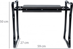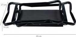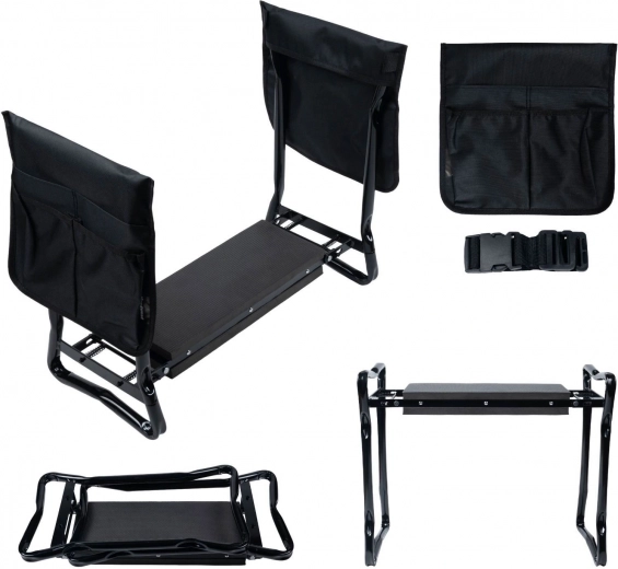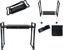 Robustná kovová konštrukcia zabezpečuje stabilitu a odolnosť, zatiaľ čo mäkké polstrovanie z EVA peny poskytuje potrebný komfort pri všetkých činnostiach v záhrade, ako je pletie, sadenie alebo zber. Dve odnímateľné vrecká poskytujú dostatok úložného priestoru pre záhradné náradie.