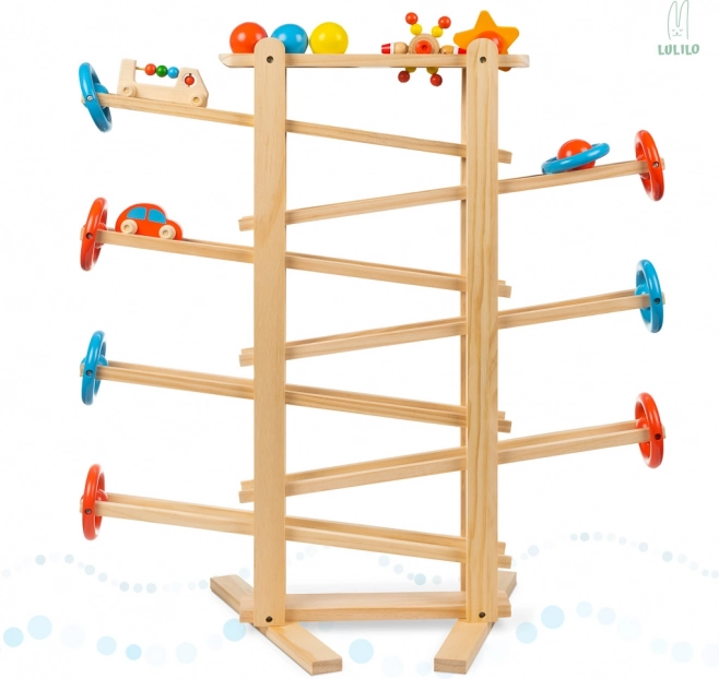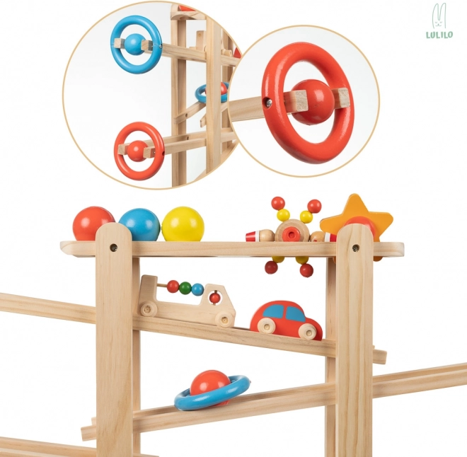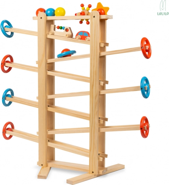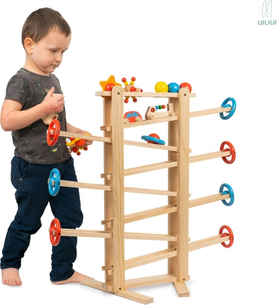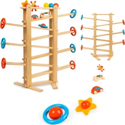 Fantastická guličková dráha, ktorá vaše dieťatko zabaví na celé hodiny! Ovládanie hračky je veľmi jednoduché, ale zábavné! Sledovanie pohybujúcich sa figúrok poteší deti, ktoré budú obdivovať "kúzlo", ktoré uvádza guľôčky do pohybu. Sledovanie pohyblivých častí stimuluje zrak a sluch a rozvíja uvažovanie o príčine a následku.