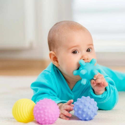 Loptičky sú vhodné na relaxačnú masáž bábätka, precvičovanie farieb a tvarov aj prvé počítanie. Skvele sa uplatnia doma, v herni aj pri kúpaní – ľahko sa držia a povzbudzujú dieťa k aktívnemu pohybu.