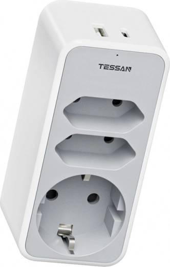 Nástenná zásuvka Tessan je ideálnym riešením pre tých, ktorí hľadajú spojenie priestrannosti, funkčnosti a estetiky. Vďaka svojim kompaktným rozmerom (5 x 4 x 10 cm) umožňuje jednoduchú organizáciu káblov a udržiavanie poriadku. Na zariadení nájdete 5 zásuviek, vrátane zásuvky Schuko, dvoch zásuviek EU, ako aj USB portov, čo uľahčuje nabíjanie rôznych zariadení na jednom mieste.