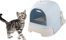 Praktická uzavretá toaleta pre mačky s výsuvnou vaničkou na jednoduché čistenie a vstavaným uhlíkovým filtrom. Vďaka priehľadným dvierkam, širokému vstupu a ergonomickej rukoväti ponúka pohodlie pre miláčika aj majiteľa, zároveň obmedzí roznášanie podstielky a zachytí zápach.