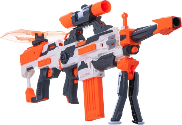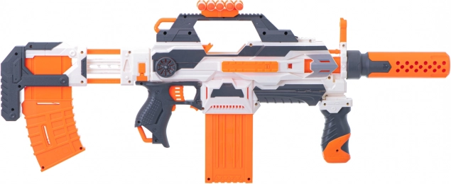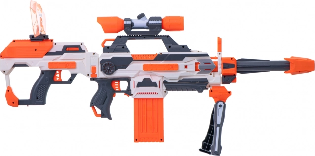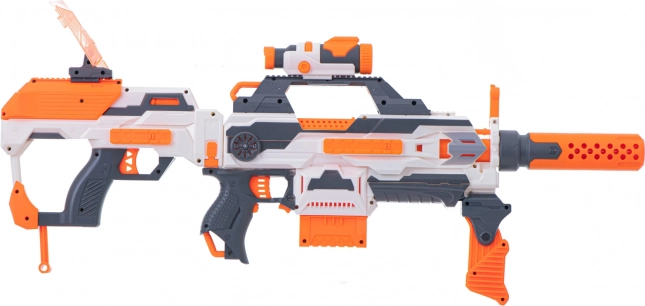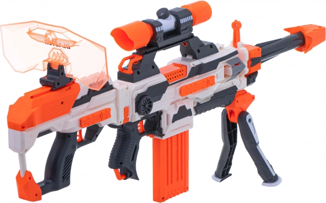 Základom tohto setu je silný pištoľ na batérie, ku ktorému ľahko pripojíte ďalšie prvky. Hlavný pištoľ má početné taktické lišty. Uprostred nájdete posuvné okienko – ideálne, keď sa náboj zasekne počas hry.