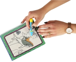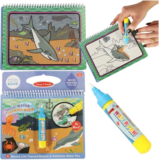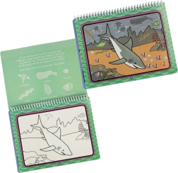 Táto znovupoužiteľná vodná omaľovanka ponúkne deťom hodiny zábavy. Vďaka magickému vodnému peru sa na stránkach po kontakte s vodou objavia sýte farby a skryté detaily podmorského sveta. Po uschnutí obrázok vybledne a dieťa môže maľovať znova a znova.