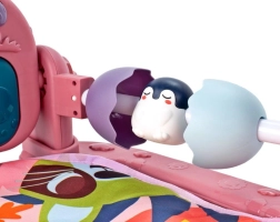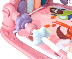 Táto ružová edukačná podložka vytvorí bezpečné a podnetné miesto na každodenné hranie. Farebný oblúk so zavesenými hračkami motivuje bábätko k naťahovaniu a uchopovaniu, čo posilňuje koordináciu oko–ruka. Interaktívne piánko s podsvietenými klávesmi ponúka 3 zvukové režimy – tóny stupnice Do–Re–Mi–Fa, krátke zvuky (napr. detský smiech) a dlhšie melódie – a tým prispieva k rozvoju sluchu a rytmu.