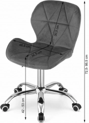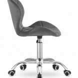 Prineste si pohodlie a štýl do svojho pracovného priestoru s touto elegantnou otáčavou kancelárskou stoličkou. Velúrové čalúnenie a chrómová základňa s gumovými kolieskami zaisťujú jak estetický vzhľad, tak funkčnosť. Táto stolička dokonale padne do detských izieb, štúdií, kancelárií a informačných centier, vďaka svojej nadčasovej konštrukcii a ergonomickému dizajnu, ktorý poskytuje optimálnu podporu zad a tela.