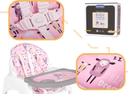 Čistota nebude problém, pretože všetky povrchy výrobku sú potiahnuté špeciálnym ochranným náterom. Ten nielenže udržiava čistotu, ale zároveň chráni výrobok pred poškodením, ku ktorému by mohlo dôjsť počas používania. Stolička pevne drží na mieste vďaka širokej základni, ktorá zároveň chráni podlahu pred poškriabaním a inými nežiaducimi stopami a zabraňuje pošmyknutiu nôh. Mäkký poťah stoličky a opierky chrbta zabezpečí, aby sa vášmu dieťaťu sedelo pohodlne. Pre úplnú bezpečnosť vášho dieťaťa sú tu päťbodové bezpečnostné pásy, takže môžete svoje dieťa do stoličky pokojne posadiť a ono samo nevylezie.