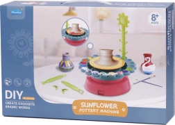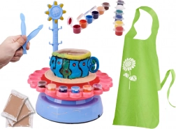Súprava obsahuje farebne atraktívny hrnčiarsky kruh, ktorý je určený na modelovanie hliny a zdobenie.