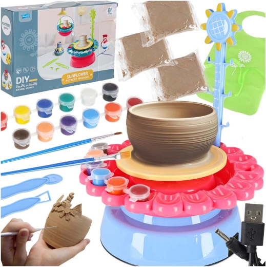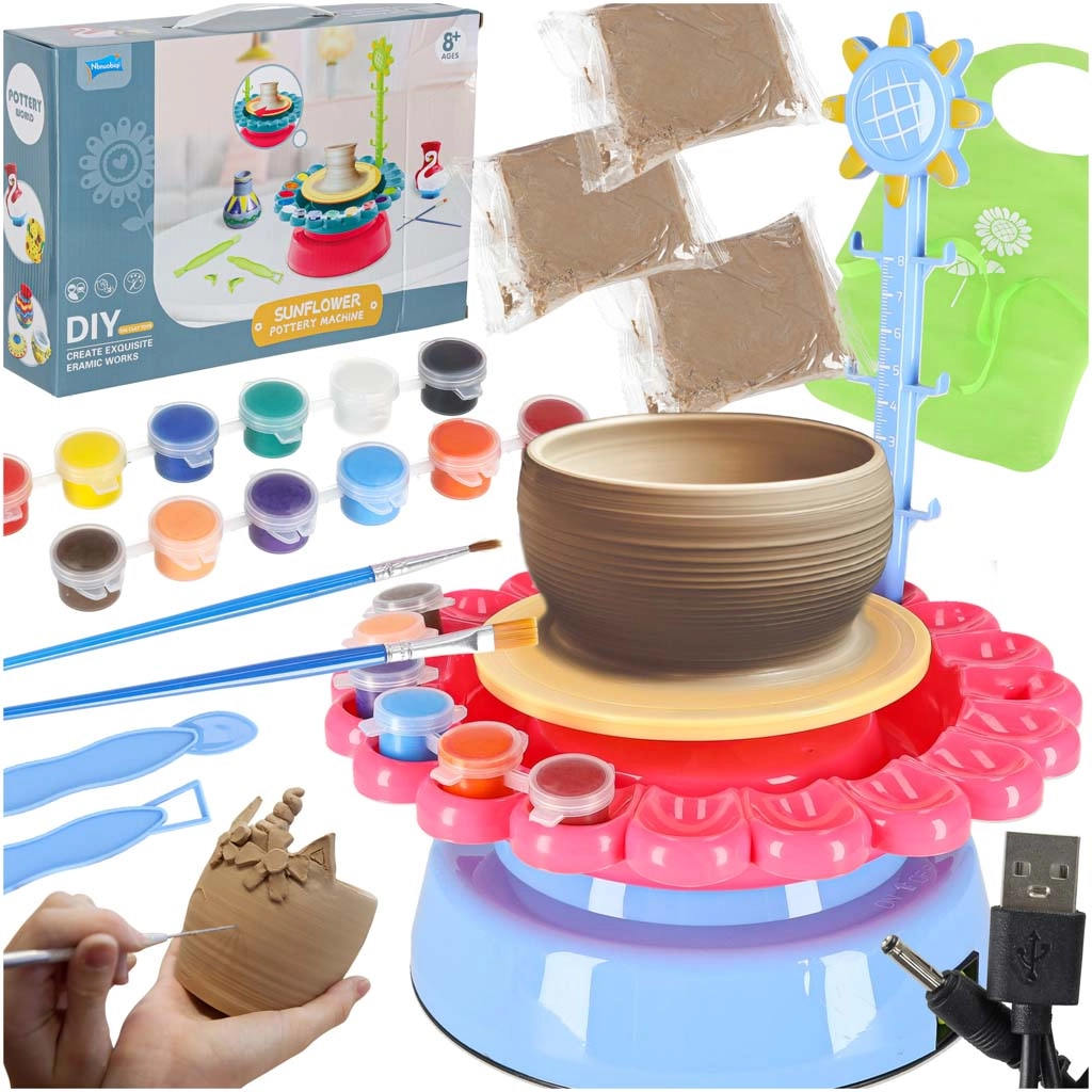 - Kompletný set: kruh, hlina, farby, štetce, nástroje, USB kábel a zástera