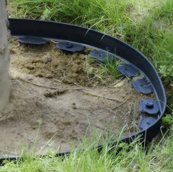 Záhradný obrubník Gardlov je navrhnutý tak, aby bol stabilný aj v menej pevných pôdach vďaka priloženým kotviacim kolíkom.