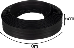Produkt je navrhnutý tak, aby vyhovel akejkoľvek záhrade vďaka možnosti ľahkého prispôsobenia dĺžky. 6 cm výška efektívne zabraňuje rozrastaniu trávy a koreňov, a tak udržiava záhradu upravenú a peknú. Vďaka čiernemu elegantnému povrchu obrubník esteticky ladí s okolnou výsadbou.