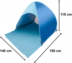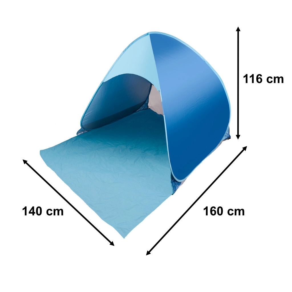 Plážový stan je ideálne riešenie pre letné dobrodružstvá s rodinou alebo priateľmi. Rýchle a jednoduché zloženie vďaka systému automatického rozloženia, umožňuje stan ľahko prenášať v praktickej prepravnej taške. Stan poskytuje ochranu pred slnkom, vetrom a ľahkým dažďom. Špeciálny povrch blokuje škodlivé UV žiarenie a udržiava pohodlnú teplotu vo vnútri.