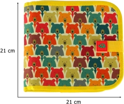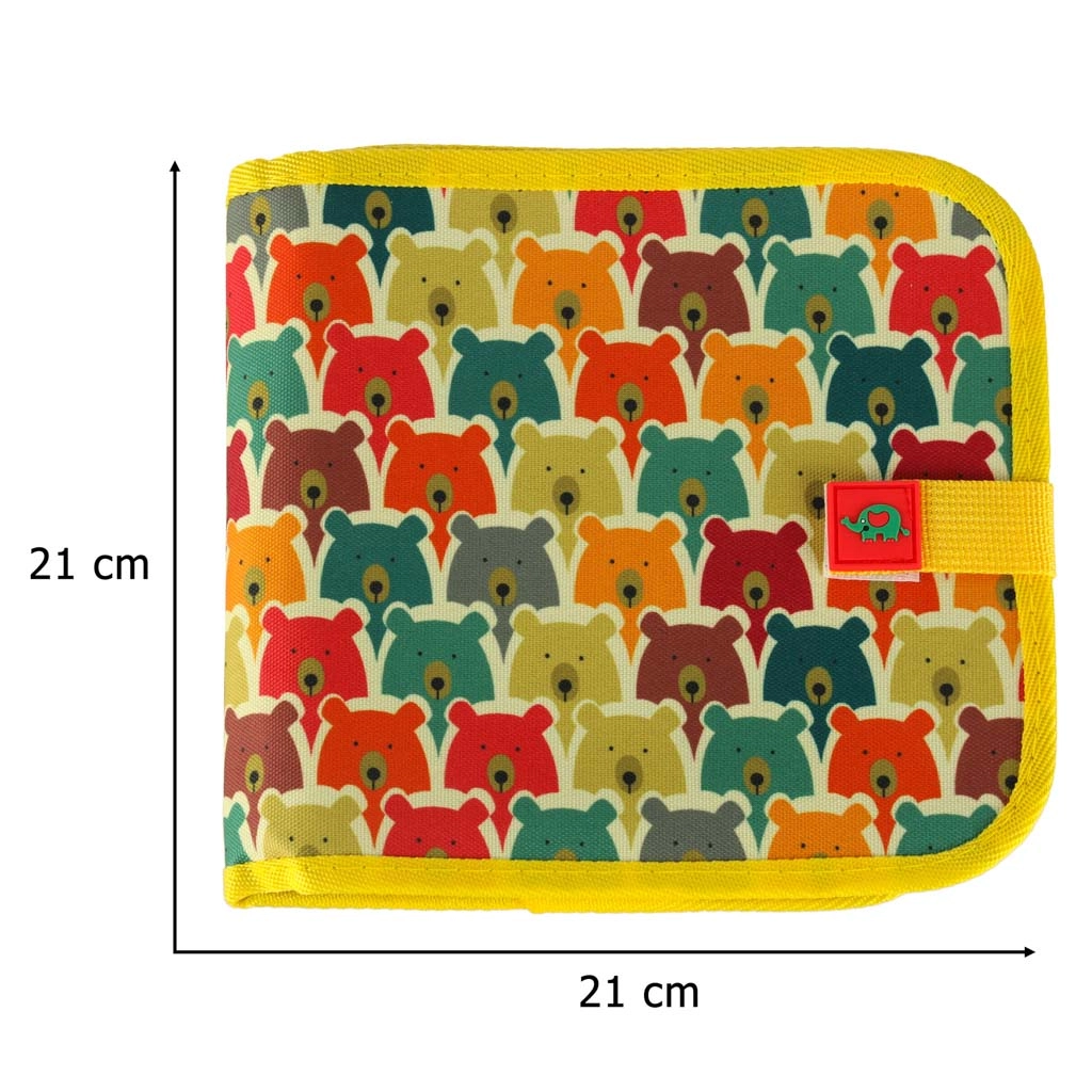 Vďaka vodeodolnému textilnému obalu s veselým motívom medvedíkov a zapínaniu na suchý zips je knižka odolná, skladná a bezpečne drží zatvorená v batôžku. Podporuje učenie písmen, číslic aj voľné kreatívne kreslenie, čím rozvíja fantáziu a jemnú motoriku.