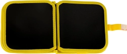 Táto prenosná kriedová knižka je perfektný spoločník pre deti doma aj na cestách. Otvára sa ako zápisník a ponúka 14 čiernych tabuľových strán, na ktoré možno písať a kresliť priloženými kriedovými fixkami. Všetko ľahko zotriete vlhkou handričkou a môžete tvoriť znovu a znovu.