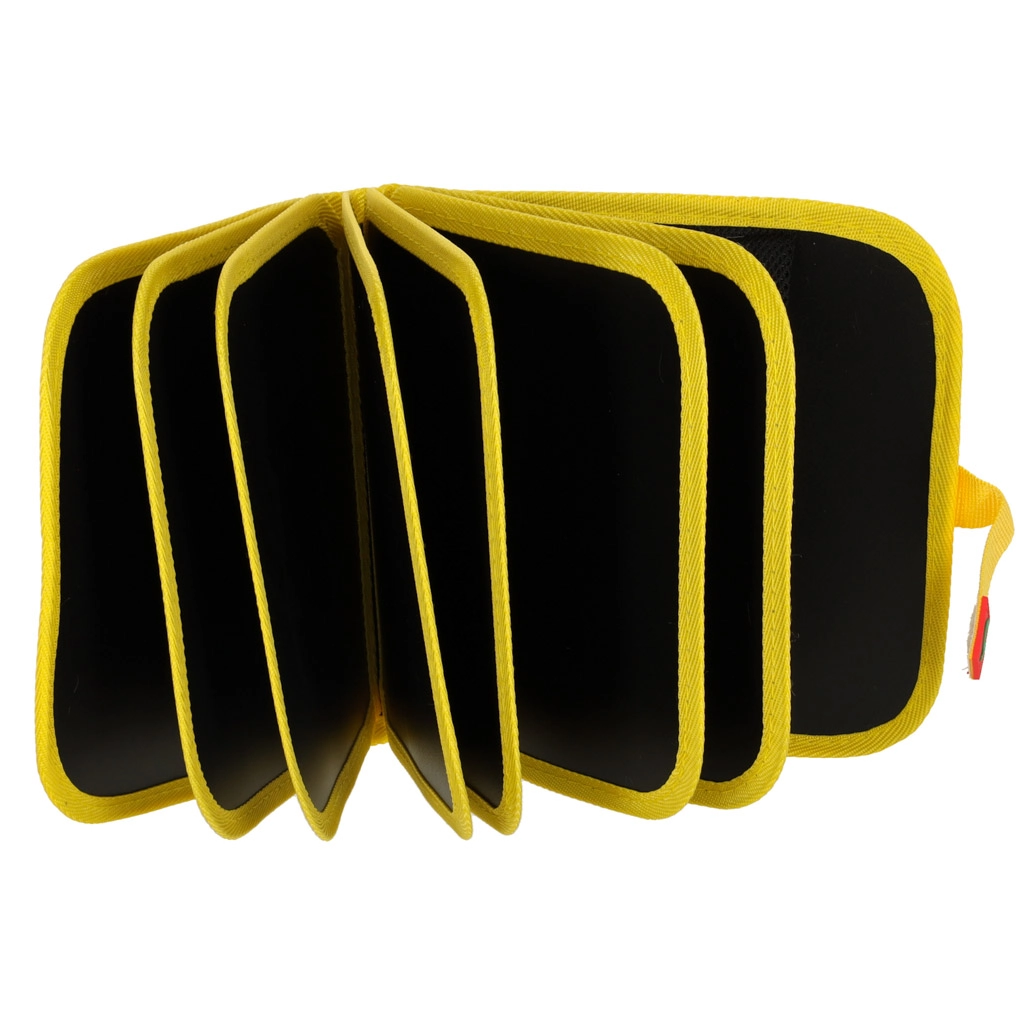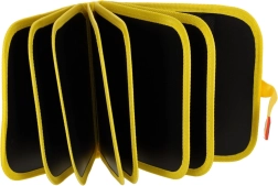 Knižka sa otvára ako puzdro a vďaka zapínaniu na suchý zips bezpečne drží. Ľahká a kompaktná – ideálna na cestovanie a zábavu na cestách.