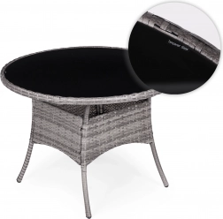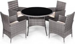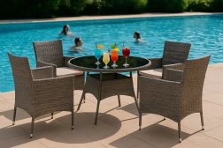 Sada je vyrobená z pevného polyratanu, ktorý je odolný voči slnečnému žiareniu, vlhkosti a zmenám teploty. Jeho povrch je navyše jednoducho čistiteľný – stačí utrieť vlhkým handričkou.