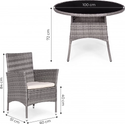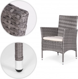 Prineste si do svojho vonkajšieho priestoru komfort a štýl s touto záhradnou súpravou z polyratanu. Je ideálna pre letné stretnutia, grilovanie, rannú kávu alebo len relax s knihou. Vďaka svojej odolnosti voči počasiu ju môžete nechať vonku po celú sezónu, bez obáv z poškodenia.