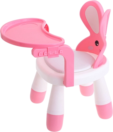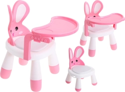 Táto multifunkčná stolička s motívom zajačika premení každé jedenie aj zábavu na príjemný rituál. Odnímateľný ružový stolík poslúži na kŕmenie, kreslenie aj stavanie kociek, zatiaľ čo ergonomické operadlo s ušami podporí správne a pohodlné sedenie.