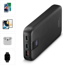 Vysoko výkonný powerbank s kapacitou 20000 mAh ponúka rýchle nabíjanie a možnosť nabíjania troch zariadení súčasne. Je kompaktný, ľahký a vybavený LED displejom, ktorý zobrazuje stav nabitia.