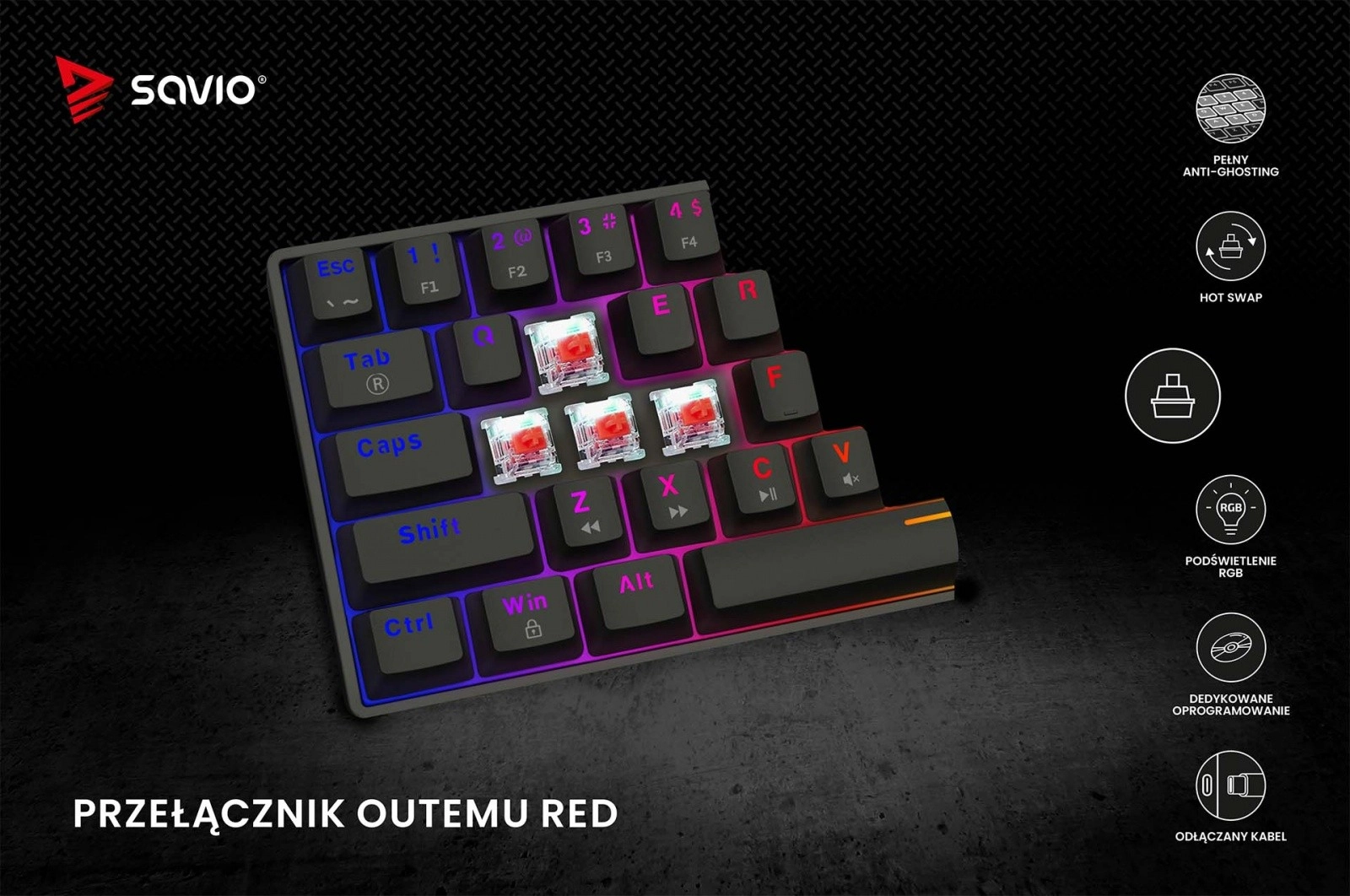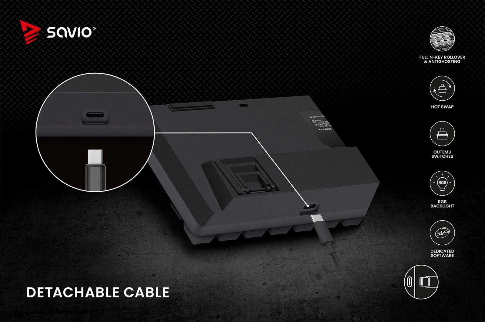Klávesnica Blackout X2 je vybavená odpojiteľným káblom USB-C, ktorý uľahčuje transport a ukladanie.