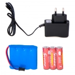 Súčasťou je akumulátor 4,8 V 700 mAh, sieťová nabíjačka aj batérie do ovládača (3× AA). Stačí vybrať z balenia a vyraziť.