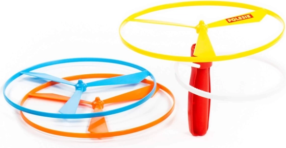 Zábavná sada lietajúcich vrtuliek na vonkajšie hry, ktorá rozvíja pohyb, koordináciu a rýchle reakcie. Stačí nasadiť vrtuľku na rukoväť, potočiť a vypustiť – farebné kotúče sa elegantne točia a pomaly klesajú k zemi. Dodávané v rôznych farebných kombináciách, varianta je zasielaná náhodne podľa dostupnosti.