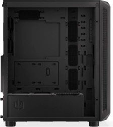 Tvrdené sklo a skryté káble: Bočný panel z tvrdeného skla poskytuje skvelý pohľad na farebné RGB komponenty. Organizácia káblov zaisťuje čistý vzhľad a lepšie prúdenie vzduchu.