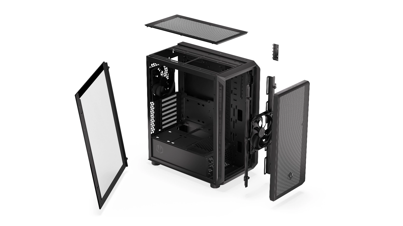 • Priestranný interiér: Vhodná pre grafické karty do 350 mm, zdroje do 300 mm a podporuje chladiče do 360 mm.