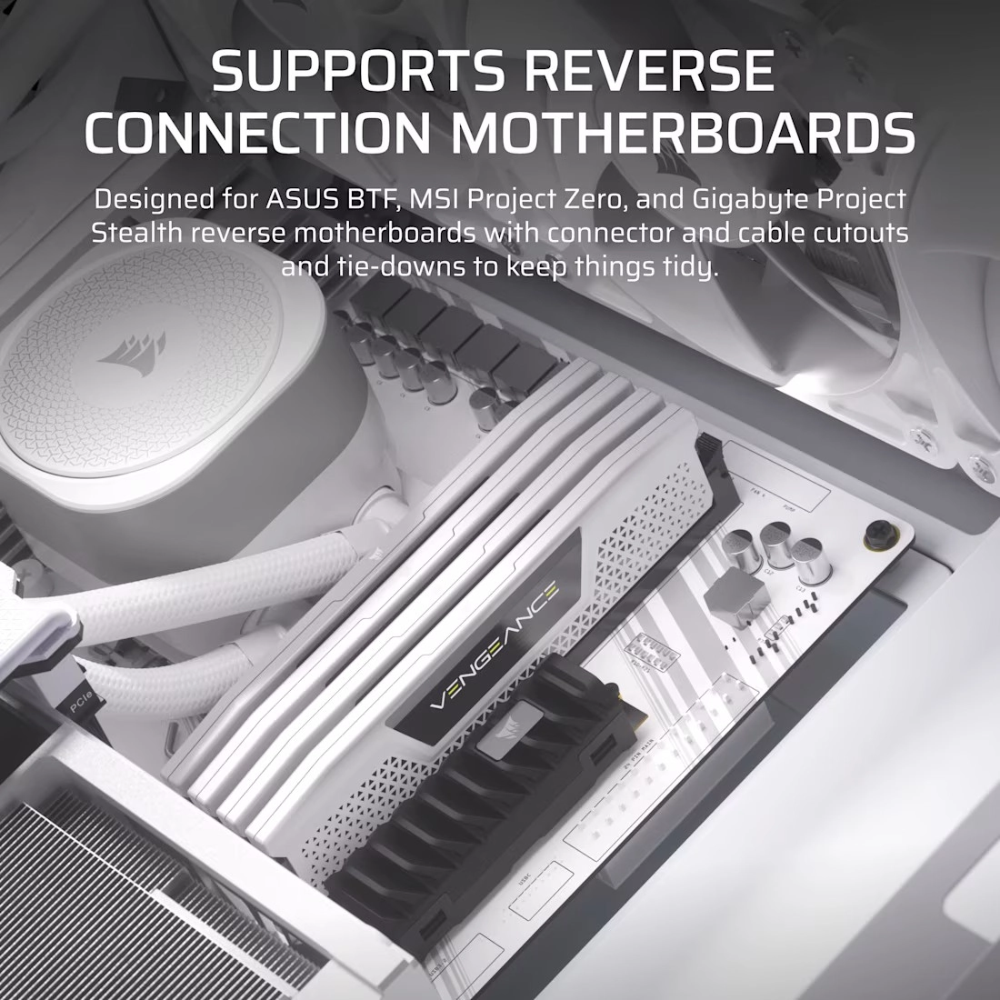 Súčasťou balenia sú tri výkonné ventilátory RS120, ktoré zabezpečujú optimálne chladenie pre vaše komponenty. Ďalej ponúka dvojitý úchyt pre radiátor 360 mm a rameno proti ohýbaniu grafickej karty, čo prispieva k lepšej stabilite a životnosti vašej zostavy. Skriňa je navrhnutá tak, aby fungovala s doskami s otočenými konektormi, čím poskytuje maximálnu flexibilitu pri výbere komponentov.