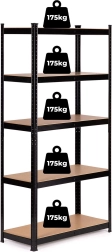 Úložný regál ModernHome je nevyhnutným doplnkom pre každú garáž, dielňu alebo pivnicu. Je ideálny na uskladnenie nástrojov, autodielov alebo záhradného náradia. Vďaka vysokej nosnosti políc až 175 kg ľahko zorganizujete svoj priestor a udržíte poriadok aj s ťažkými predmetmi.