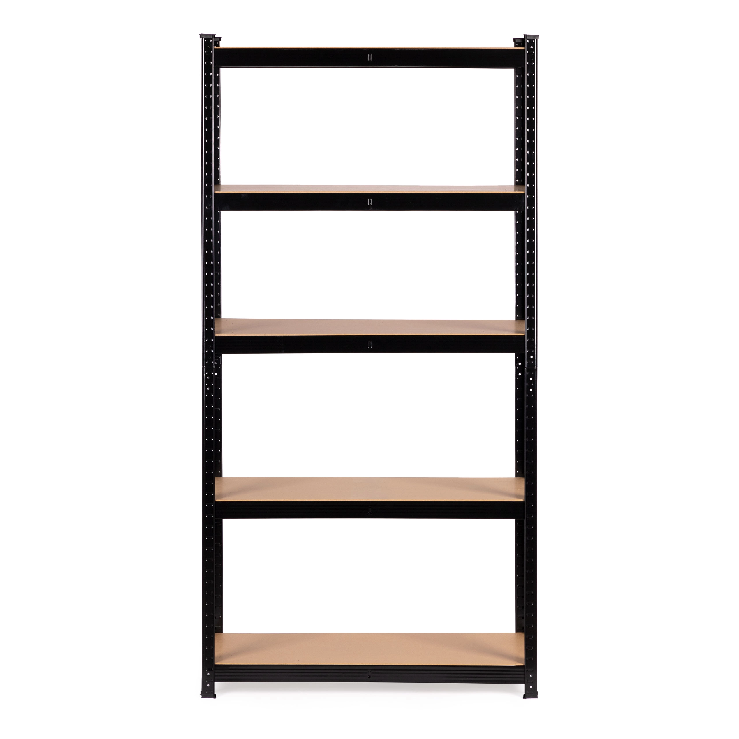 Regál obsahuje 5 pevne konštrukčných políc, ktoré môžete upevniť v ľubovoľnej výške podľa vašich potrieb. Každá polica má dodatočnú centrálnu podporu pre zaistenie stability. Policové dosky sú vyrobené z odolnej MDF dosky, odolnej proti mechanickému poškodeniu a tlaku, čo zaisťuje dlhodobé, bezproblémové použitie.