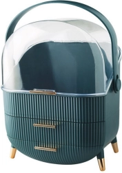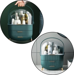 Udržujte si poriadok a štýl! Tento zelený organizér na kozmetiku s priehľadným vekom je ideálny pre každého, kto si cení estetiky a funkčnosti vo svojej každodennej starostlivosti a líčení. Vďaka jeho priestrannej konštrukcii, o rozmeroch 37 x 25 x 18,5 cm, ľahko pojme širokú škálu produktov, či už ide o štetce, tiene, rúže, parfémy, krémy či prípravky starostlivosti o pleť.