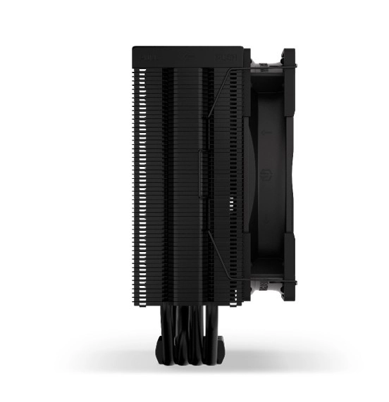 Chladič Fera 5 Black je vybavený oceneným ventilátorom Fluctus 120 PWM s voliteľným polopasívnym režimom, ktorý spolupracuje so štyrmi tepelnými trubicami spájajúcimi základňu s asymetrickým radiátorom. Každý prvok je navrhnutý tak, aby poskytoval najlepší výkon vo svojej triede bez rušivého hluku.