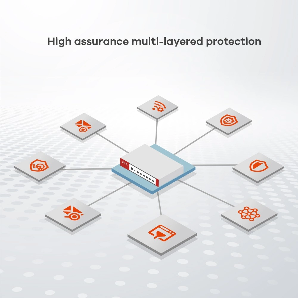Integrácia s Nebula Cloud Management umožňuje detailné nastavenie bezpečnostnej politiky Zero-Trust Network pre organizácie s možnosťou autentifikácie prístupu a zabezpečeným Wi-Fi. Vyspelá hrozbová inteligencia integrovaná s analýzami od popredných firiem zvyšuje presnosť detekcie prostredníctvom širšieho pokrytia malwarovej databázy.